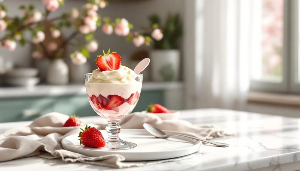 Il mascarpone può essere sostituito parzialmente con ricotta vaccina setacciata per una versione più leggera in termini di grassi, oppure con yogurt greco intero per una nota più acidula. Le fragole si prestano a essere alternate con lamponi, mirtilli o una combinazione di frutti rossi di stagione. In estate, le pesche noci tagliate a cubetti piccoli e macerate con menta e limone funzionano benissimo nello stesso schema di composizione. Per una versione senza uova crude, la crema può essere realizzata montando il mascarpone con la sola panna fresca e lo zucchero a velo.